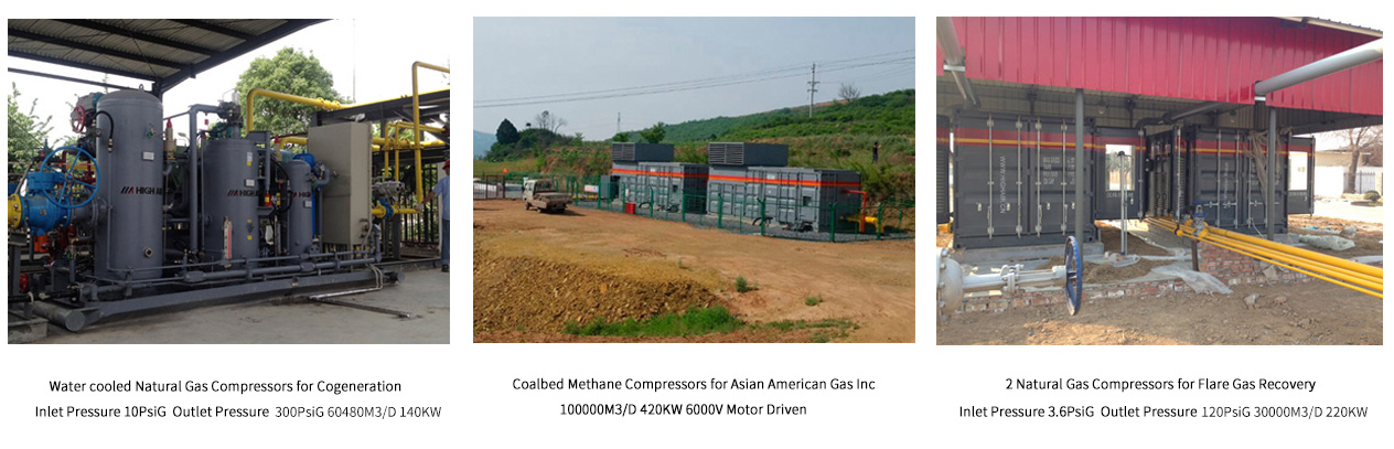 High Air Rotary Screw Natural Gas Compressors are very cost-effective for handling high volumes of gas in gas gathering, vapor recovery, and other applications. Rotary screw Natural Gascompressors are ideal in large volume/low suction pressure applications and to upgrade existing reciprocating compressor installations. Since they operate with few moving parts, low maintenance and high reliability are inherent in rotary screws.